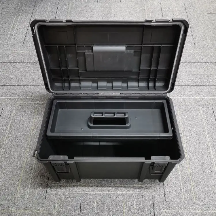تُصنع علبة تخزين الأدوات هذه من البولي بروبيلين المتين والمعدن لحفظ أدواتك الكهربائية والأدوات اليدوية بأمان أثناء السفر أو التنقل في مواقع البناء الوعرة. إنها الطريقة المثالية لحمل وتنظيم معداتك