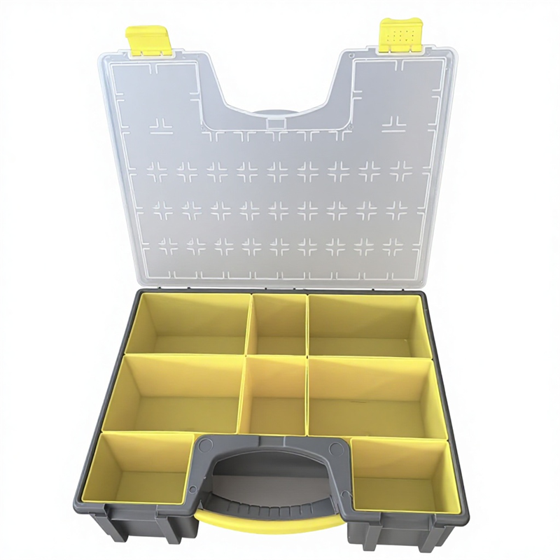 يتميز الصندوق بعمليته في مجموعة واسعة من التطبيقات. في ورش العمل والكراجات، يحافظ على أدوات اليد والأجهزة منظمة وسهلة الوصول إليها. وسيقدّر الفنيون وموظفو الخدمة الميدانية سهولة الحمل والخصائص الوقائية عند نقل الأدوات بين المواقع. وفي بيئات التصنيع، يساعد الصندوق في تنظيم القطع لمصانع التجميع أو فرق الصيانة. كما سيجده الهواة مثاليًا لتخزين مستلزمات الحرف اليدوية أو قطع النماذج أو المكونات الإلكترونية. وبفضل طبيعته القابلة للتخصيص، يمكن للصندوق التكيّف مع العديد من السيناريوهات، الكبيرة منها والصغيرة.