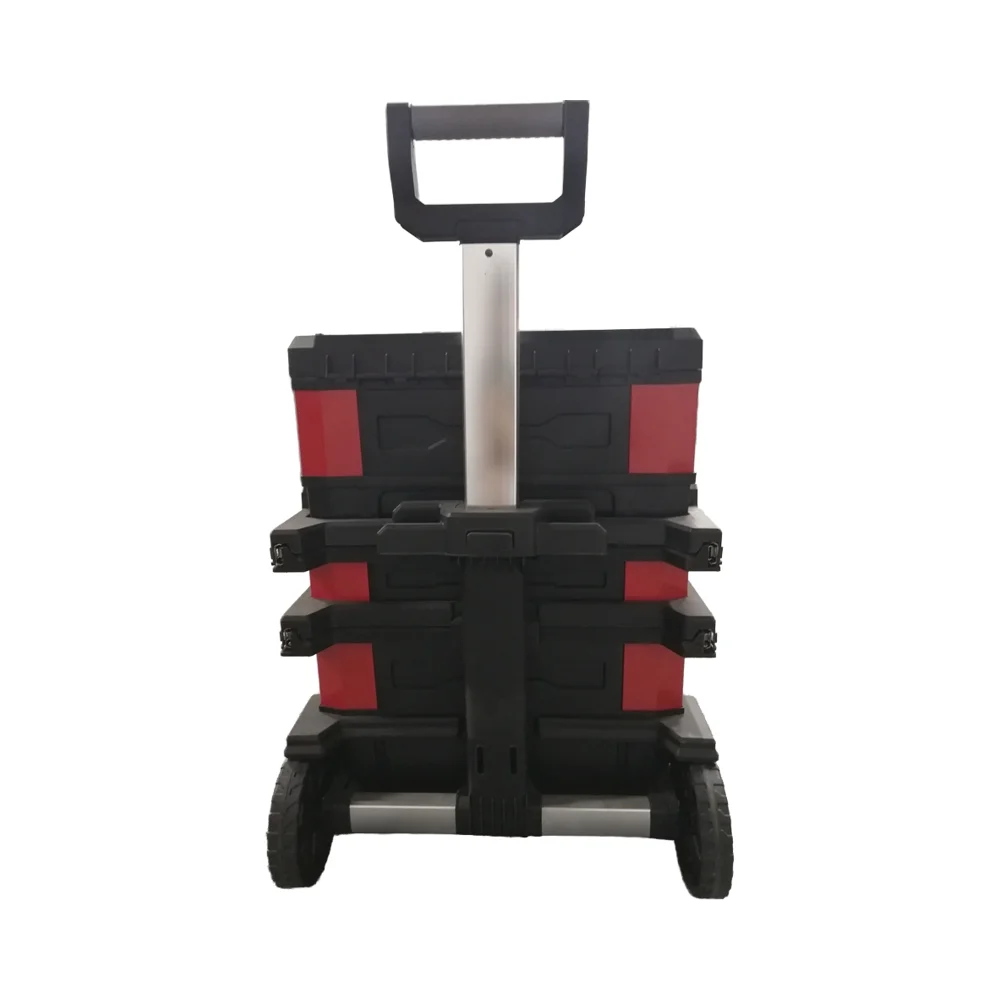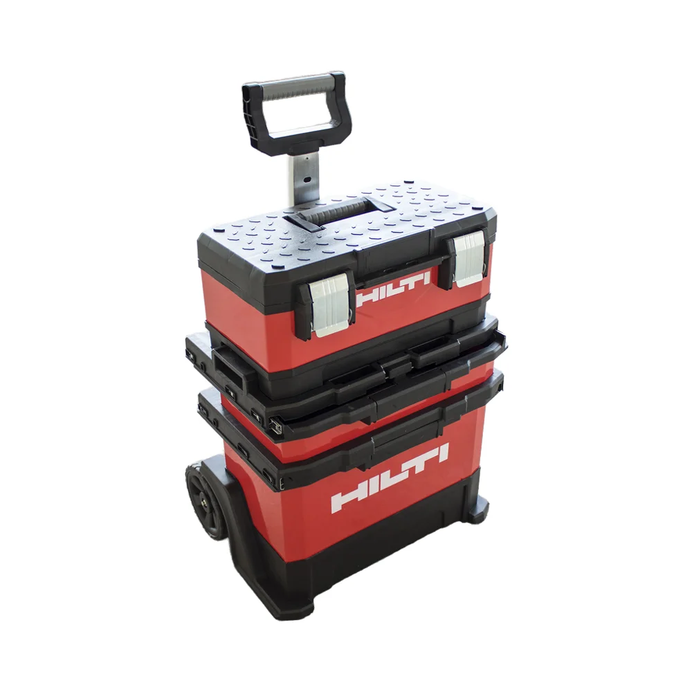 تُعدّ سهولة الحمل أولوية. يقلل المقبض التلسكوبي المريح من الإجهاد أثناء النقل ويتكيّف مع ارتفاعات مختلفة لسحب مريح. ويمكن تأمين المقبض في عدة مواضع، وطيّه بشكل مسطح عند عدم الاستخدام. وتوفّر العجلات الكبيرة ذات المداس المقاوم للتآكل دفعًا سلسًا عبر أرضيات مواقع العمل ومن خلال أبواب الورشة. ويحتوي الصندوق العلوي القابل للفصل على مقبض حمل مصبوب بنقطة قبض مريحة، مما يسهّل التنقّل لمسافات قصيرة أو نقل الأدوات بسرعة دون استخدام القاعدة المتحركة.