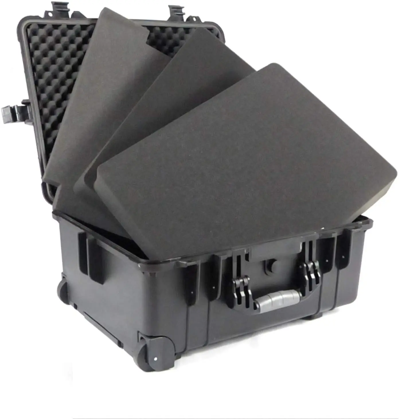 حقيبة بلاستيكية صلبة مقاومة للماء مع عجلات، حقيبة تخزين للنقل الجوي للأجهزة