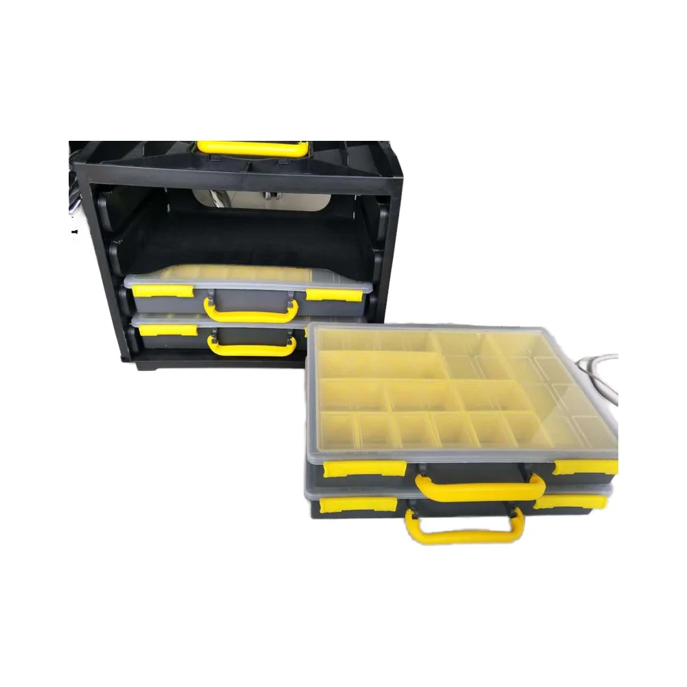 Cette boîte à outils présente un design détachable et empilable qui vous permet de l'utiliser comme un grand contenant ou de la diviser en plusieurs petits compartiments. Chaque section se verrouille solidement en place pour un empilement stable et se sépare facilement lorsque vous devez accéder à un ensemble spécifique d'outils ou de composants. L'approche modulaire facilite la personnalisation de la manière dont vous transportez et rangez vos articles, que vous ayez besoin d'un étui compact pour des travaux légers ou d'un kit plus grand pour des interventions complètes