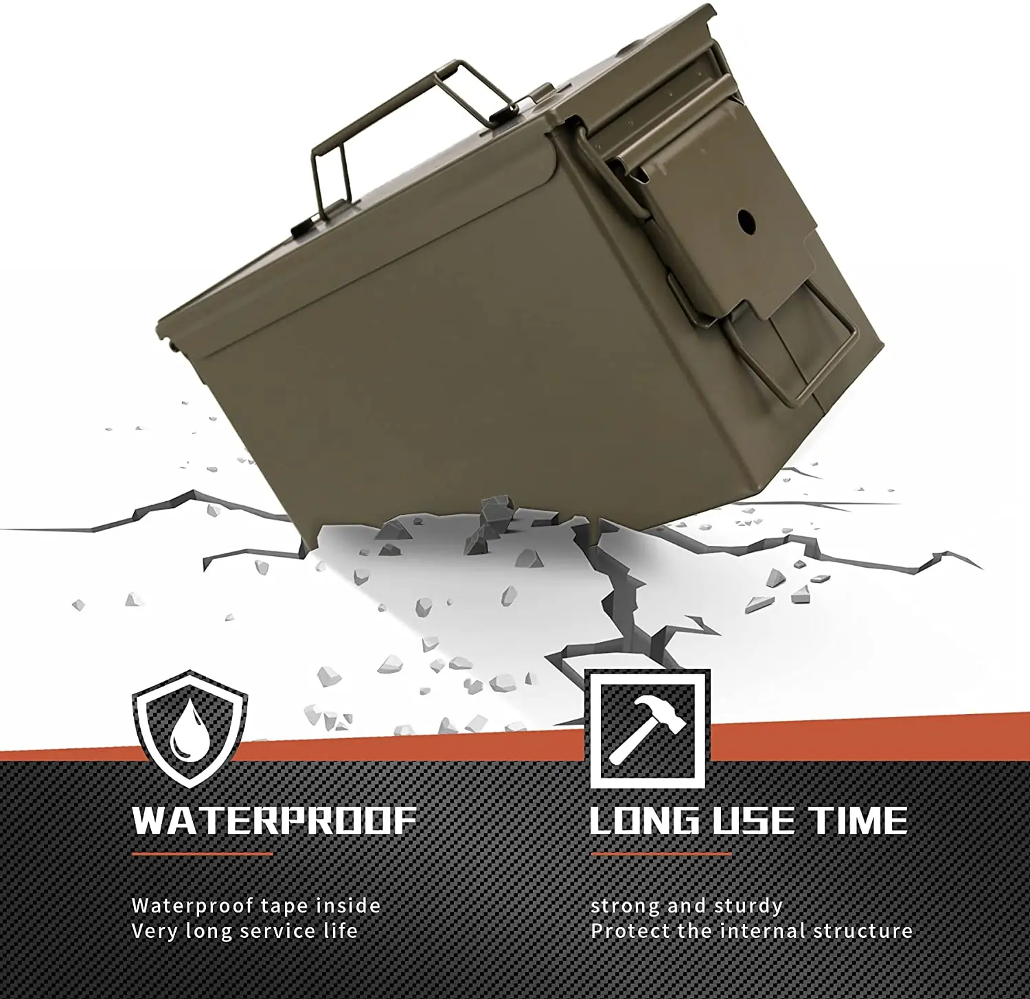 Boîte à outils tactique robuste et étanche, boîte métallique pour balles de calibre 50 Cal M2A1, avec couvercle amovible